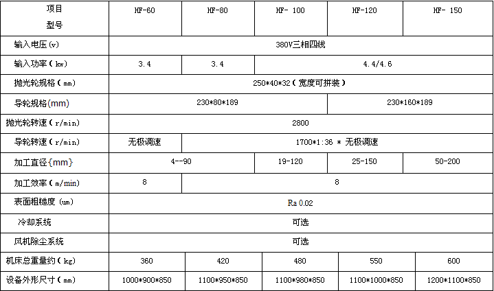 HF系列單工位(單磨頭)外圓拋光機基本介紹: