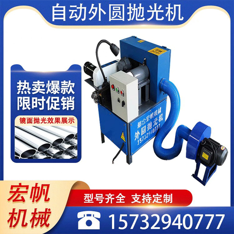 主要特點:該機結構是我公司最新設計結構,有拋光速度快、調整方便的特點。導輪轉速可調,滿足不同直徑、不同速度的工件的打磨與拋光要求,可選加裝除塵系統。適用于五金電鍍、汽摩配件、機械制造、裝飾裝潢等行業的各種軸類、管件與棒料外圓表面拋光打磨及拉絲。該機磨料耗材選擇廣泛可選用千葉輪、尼龍輪、布輪、麻輪、羊毛輪、鋼絲輪及碳化硅鏡面拋光輪等。